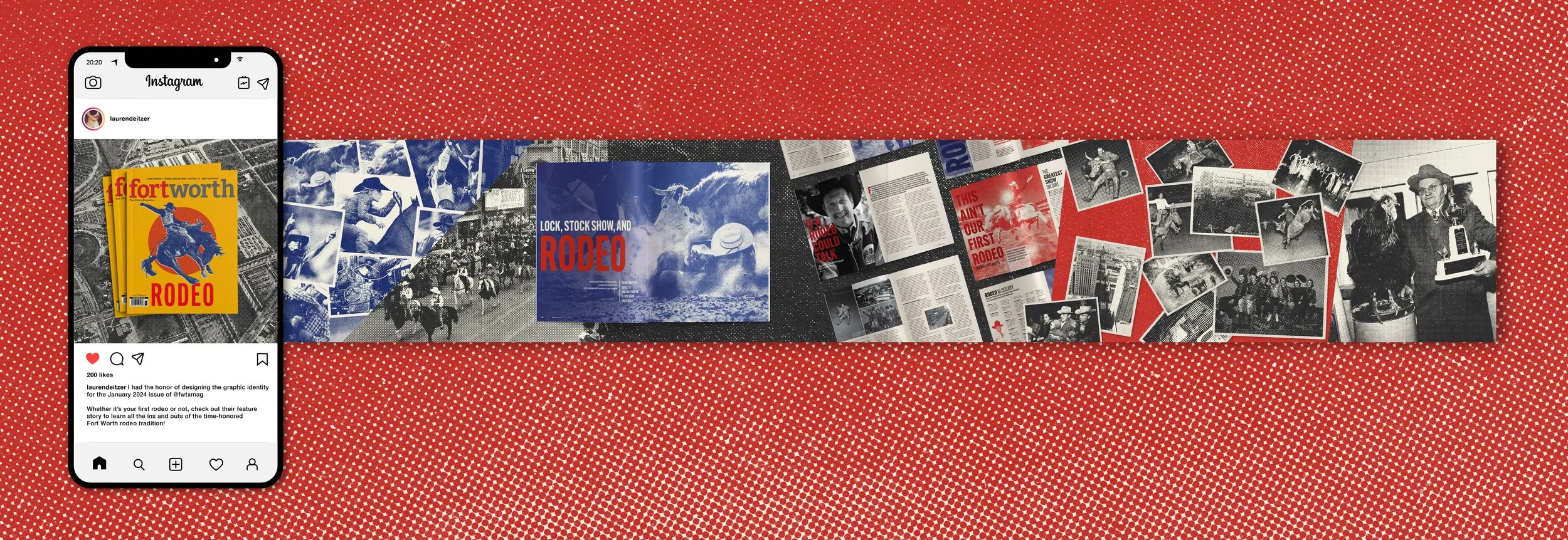 Known as “the definitive resource for where to eat, what to do and what's happening in Fort Worth”, Fort Worth Magazine has been a trusted source in its city for the last 25 years. Looking to refresh parts of their look, they came to me to establish a graphic identity for their January 2024 feature story. I drew inspiration from retro Western posters and newsprints to create bright and fun graphics that capture the vibrant FortWorth rodeo culture.