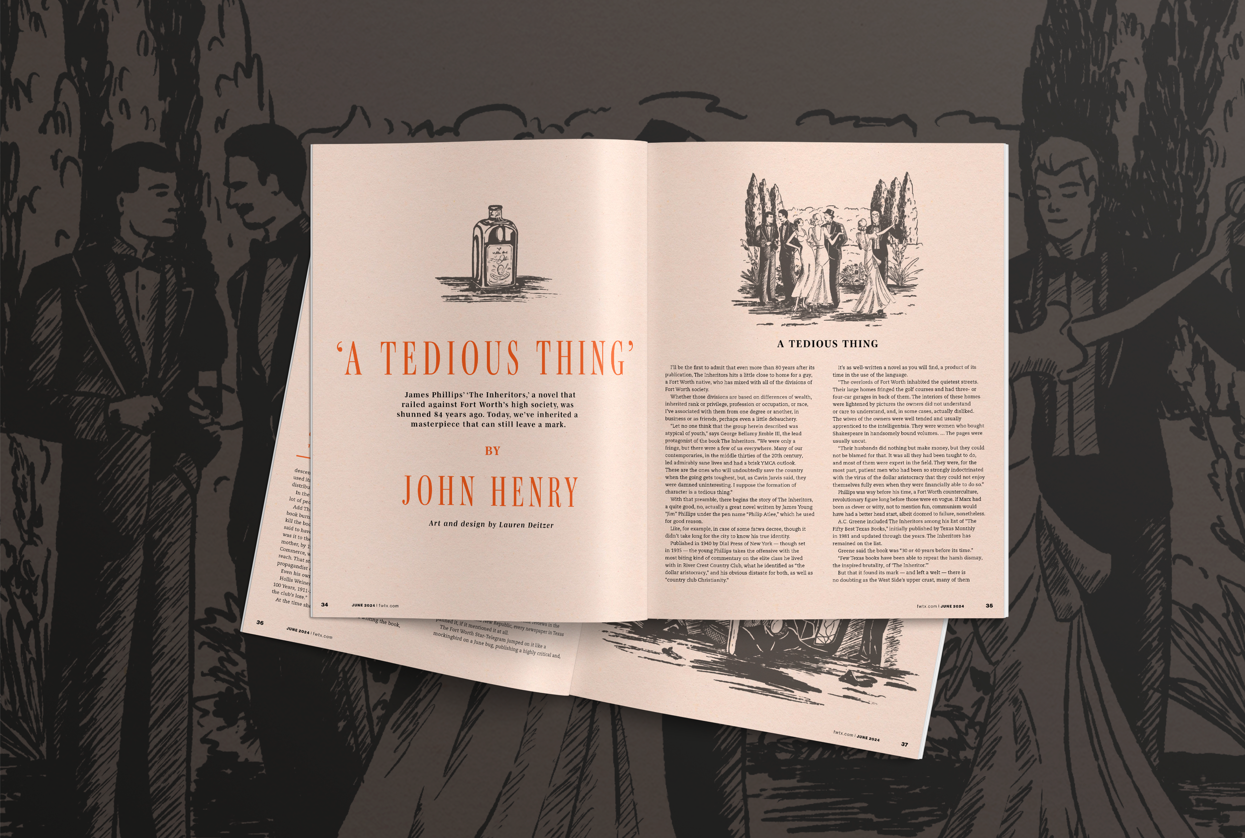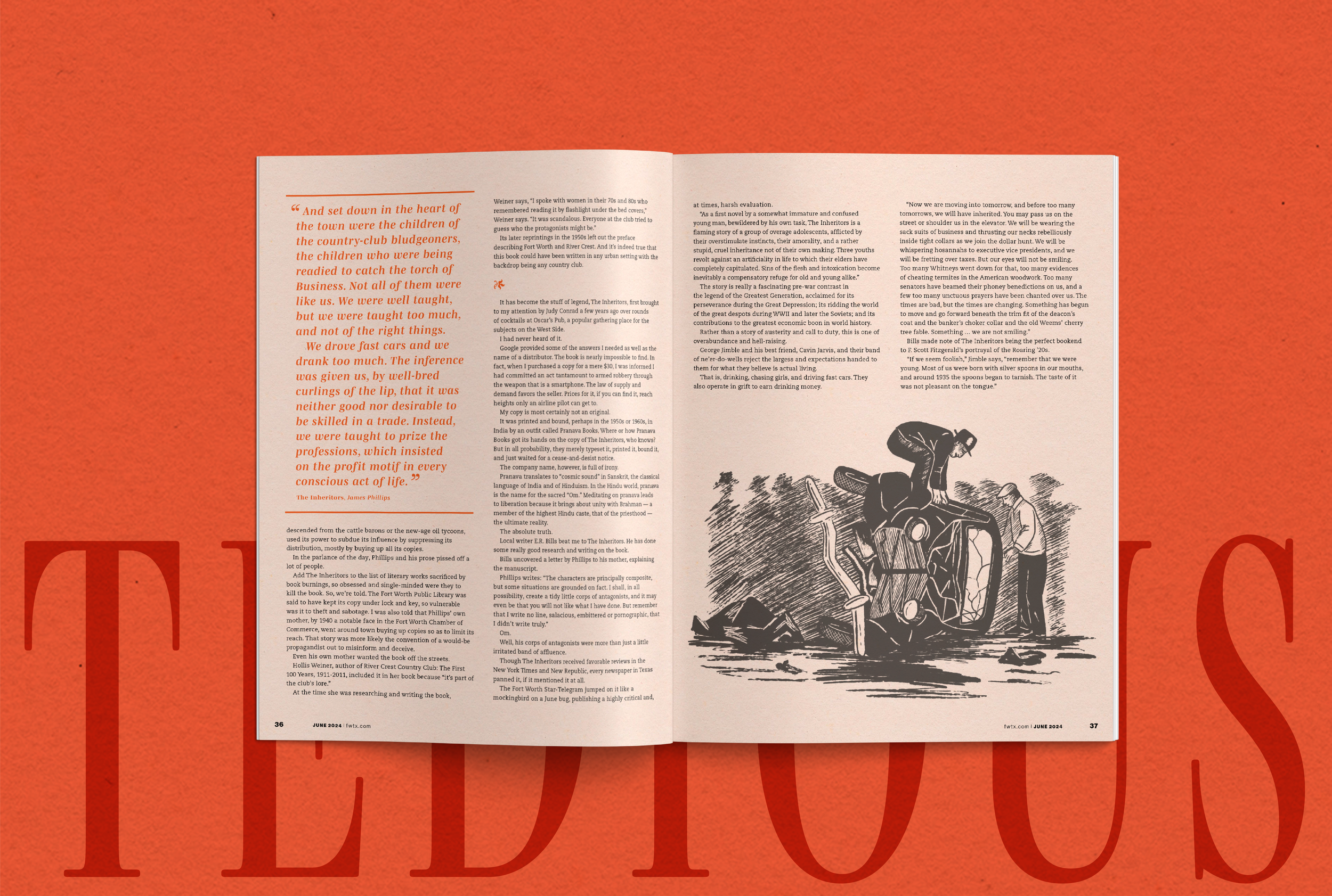 Known as “the definitive resource for where to eat, what to do and what's happening in Fort Worth”, Fort Worth Magazine has been a trusted source in its city for the last 25 years. For their June Issue of 2024, they asked me to produce illustrations and a graphic identity for a feature piece they did on the 1940s book, “The Inheritors”.